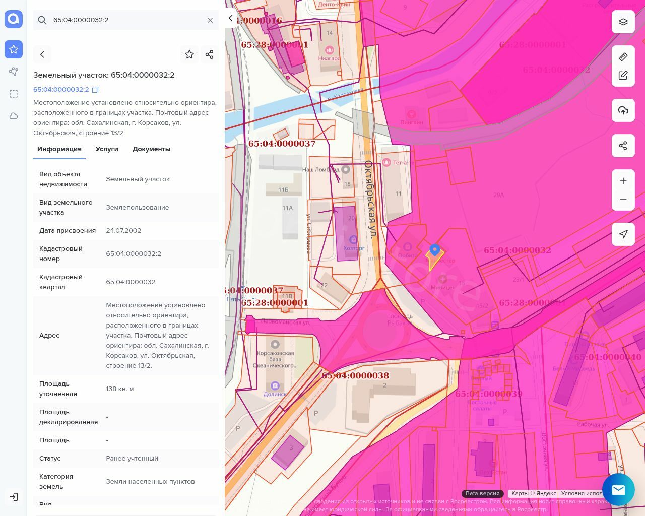 Земельный участок 138 кв. м., 65:04:0000032:2.